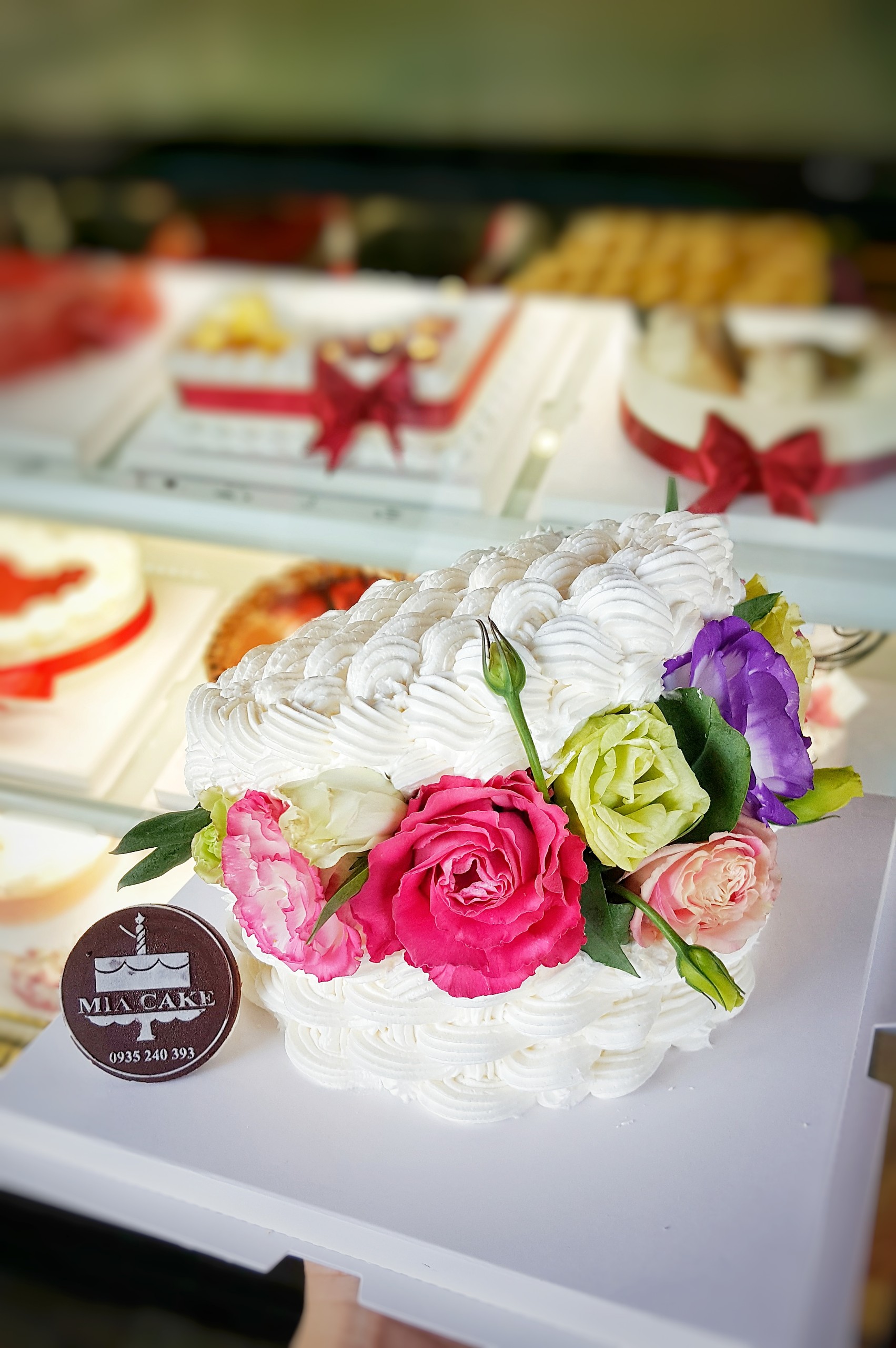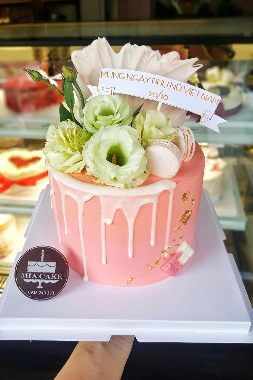 Trong những ngày lễ, nhất là các ngày lễ dùng đến hoa tươi thì giá hoa cực kì đắt đỏ, Tiệm bánh MIA vẫn không ngại dùng hoa trang trí cho thêm sinh động các dòng bánh kem tại Cửa hàng. Mẫu được kết hợp giữa hoa hồng, hoa sao tím và Macaron. Được đính thêm 1 chút vàng thực phấm (ăn đc nha).