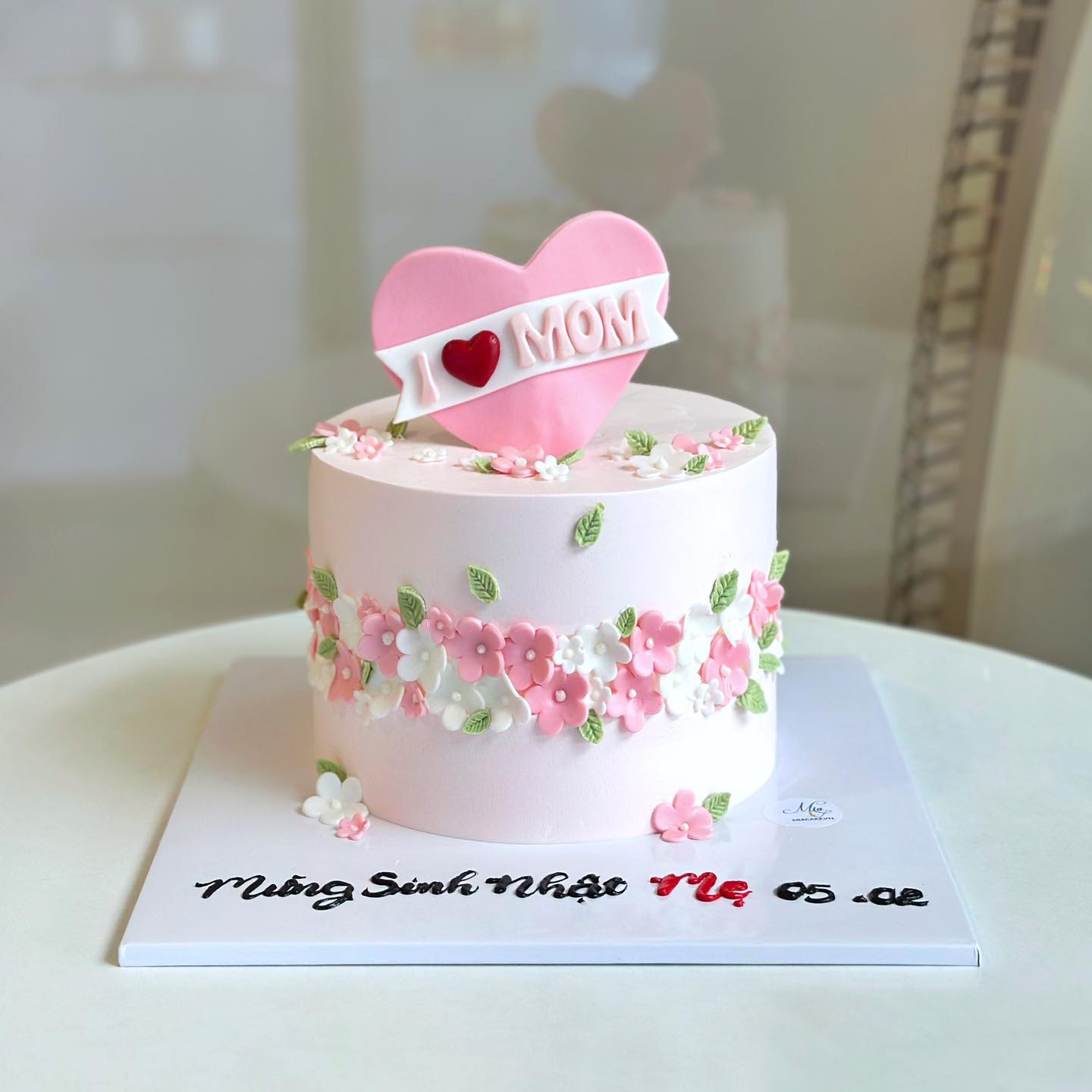 Bánh kem sữa tươi trang trí hoa fondant dành tặng cho mẹ trong ngày sinh nhật, ngày lễ. Màu sắc có thể thay đổi theo yêu cầu