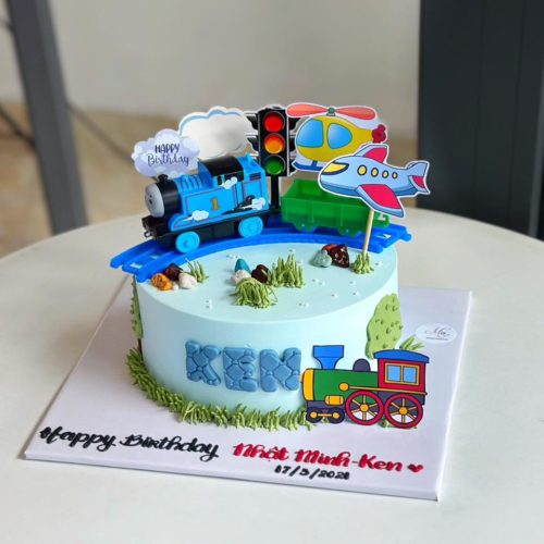 Mẫu bánh kem sữa tươi trang trí chủ đề tàu hỏa cho bé trai, màu sắc có thể thay đổi theo yêu cầu