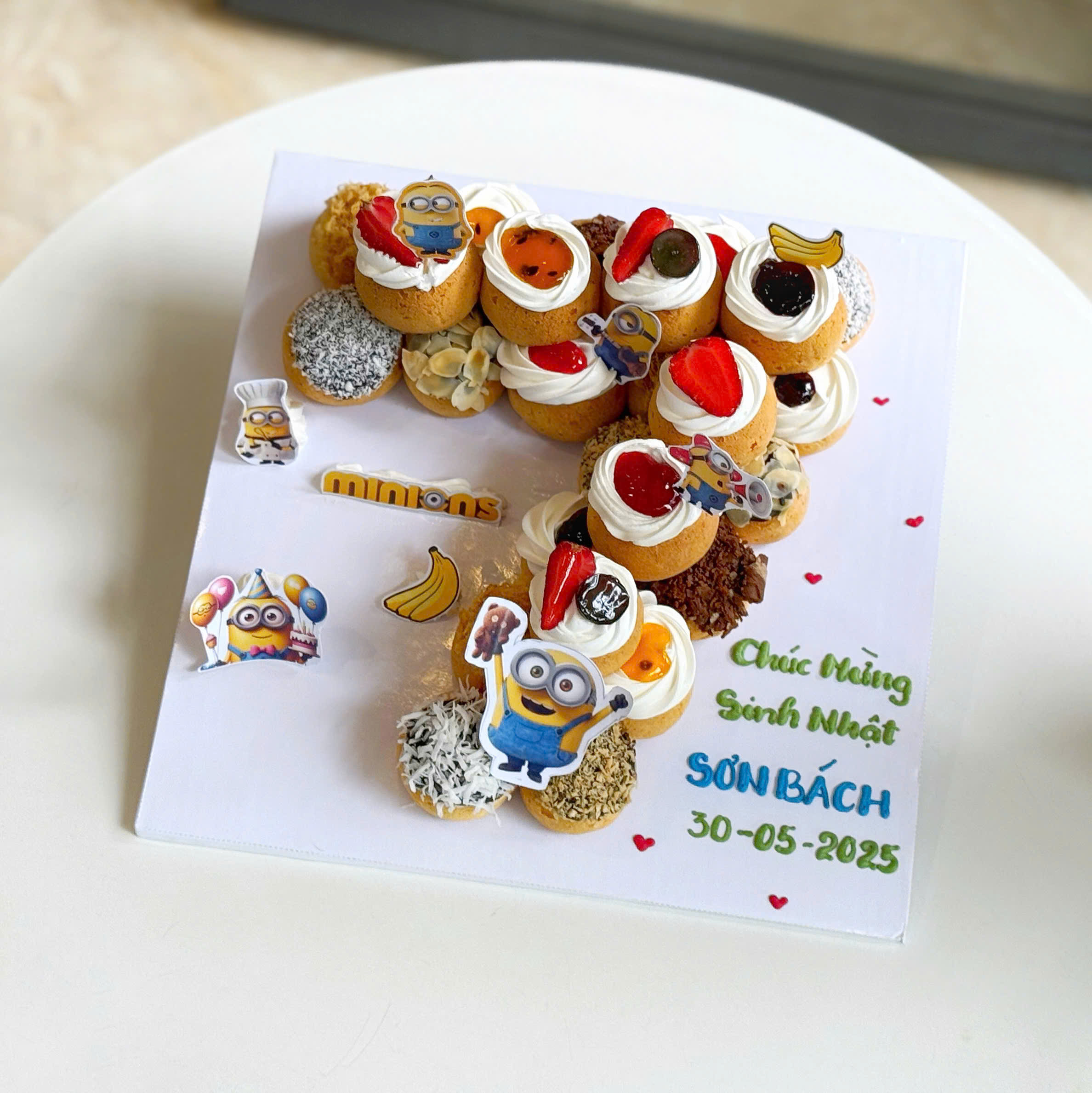 Mẫu bánh Susingapore xếp theo số tuổi của các bé,decor topping linh động và hình sticker chủ đề Minions siêu cuteee